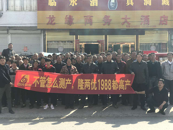 邵崗鎮(zhèn)是去年隆兩優(yōu)1988的銷售大鎮(zhèn),當?shù)亓闶凵讨苋食稍诮衲甑娜啼N售活動中積極推廣,前期積極插牌,后期積極測產(chǎn),再加上隆兩優(yōu)1988在今年高溫、臺風、大雨和低溫的情況下,表現(xiàn)優(yōu)異,名列前茅,才能在當他得知第一場訂購頒獎會將在邵崗舉辦時,振臂一呼,老百姓們奔走相告,短短幾天的時間內(nèi),便有超過一百多戶踴躍報名參加。若不是酒店大廳坐不下,人數(shù)預計會更多。