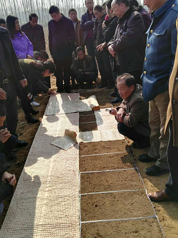 上午九點多,一行人先趕往環(huán)潭鎮(zhèn)黃林村觀看運用印刷播種技術育秧的晶兩優(yōu)1212。在如此低溫的情況下,晶兩優(yōu)1212仍能有非常不錯的出芽率及出苗齊的特點,大家對此給予了極高的評價。隨后,由戴經(jīng)理現(xiàn)場為大家演示印刷播種的操作流程,并將去年的印刷紙與今年的進行對比,凸顯了公司對這一技術的不斷創(chuàng)新。印刷播種技術以其省時省工省錢的特點得到了在場所有人的極大認同,非??春闷鋺们熬?。有種植大戶表示,有了這個技術,5分鐘最起碼能播100個盤,這種能掙錢的好東西,明年得搞個20畝試試。