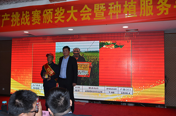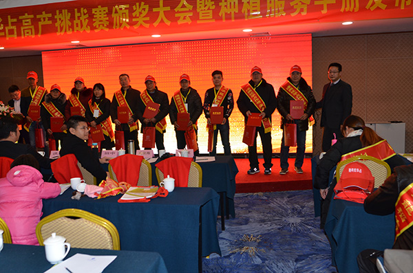 12日上午早餐結(jié)束后,大家一同前往北京中裕世紀(jì)大酒店參加“坐飛機(jī)游北京隆兩優(yōu)華占高產(chǎn)挑戰(zhàn)賽頒獎大會暨種植服務(wù)手冊發(fā)布大會”。首先由亞華事業(yè)部總經(jīng)理洪總致辭,對本次獲得高產(chǎn)冠軍的農(nóng)戶表示祝賀,并介紹了隆兩優(yōu)華占在全國的種植情況和種植服務(wù)手冊;會議第二議程是頒獎典禮,獲獎農(nóng)戶依次上臺領(lǐng)獎并合影留念,其中為獲得“推廣貢獻(xiàn)獎”和“優(yōu)秀示范獎”的農(nóng)戶頒發(fā)了證書和獎金,獲得“傳奇獎”的農(nóng)戶獎勵了上萬元的黃金偉人像章;第三項(xiàng)便是由隆平大學(xué)副校長田中給大家詳細(xì)講解了隆平大學(xué)的創(chuàng)建過程以及創(chuàng)建的目的和意義;第四項(xiàng)是隆平高科吳天順老師和大家分享雜交水稻栽培技術(shù)。會議結(jié)束之后農(nóng)戶們紛紛表示受益匪淺。