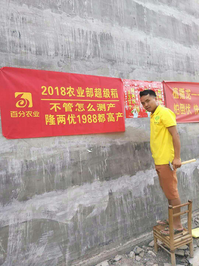 六月初廣西迎來來自湖北、湖南、江西、安微等地的營銷一線人員。他們是“財神”使者,他們不懼炎熱,不怕辛苦,不嫌麻煩的走街串巷,粘貼廣告,只要是他們能走到的地方,滿街滿巷都是“財神稻”的字樣!同時,他們還召集農(nóng)民,很有耐心的為他們講解隆兩優(yōu)1988的優(yōu)勢,達到只要是有人的地方就有我們的“財神”使者!