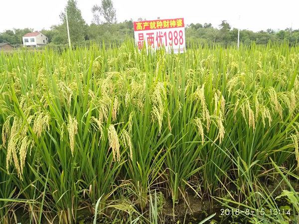 晶兩優(yōu)1988:中下游中秈新國(guó)審品種,華南晚秈即將國(guó)審;中稻種植熟期適宜;高產(chǎn)、穩(wěn)產(chǎn)性好;米質(zhì)優(yōu),國(guó)標(biāo)二級(jí)米,米飯適口性好;中抗稻瘟,最高損失率3級(jí);2018年超級(jí)稻測(cè)產(chǎn)驗(yàn)收畝產(chǎn)844.6公斤。