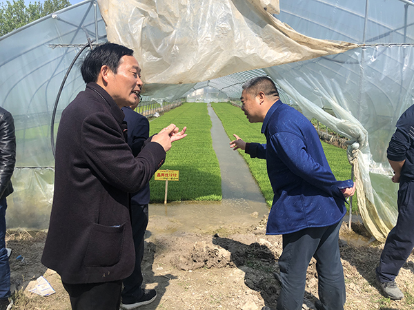 霍邱縣種植業(yè)發(fā)展局局長徐萬華領(lǐng)導(dǎo)一行參觀指導(dǎo)晶兩優(yōu)1212育秧