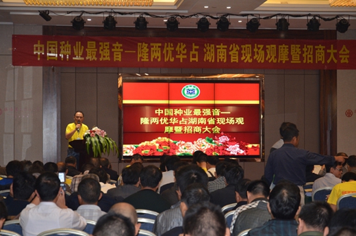 觀摩完畢后,大家乘車回到酒店會(huì)議室,舉行招商大會(huì)。會(huì)議由湖南亞華種子有限公司營銷中心副總何潑主持。首先由亞華公司總經(jīng)理助理張來友向各位參會(huì)的合伙伙伴致歡迎辭。種植專家副總王小清,對(duì)全國各地的種植表現(xiàn)以及隆兩優(yōu)華占的特征特性,進(jìn)行了生動(dòng)詳實(shí)的介紹。