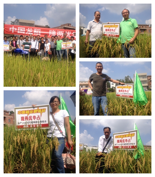 2014年11月1日,在素有“廣西糧倉(cāng)”之稱的貴港市,經(jīng)銷商潘漢東組織港南、港北、覃潭三區(qū)的20多位重點(diǎn)鄉(xiāng)鎮(zhèn)經(jīng)銷商,齊聚港南區(qū)新塘鄉(xiāng)觀摩亞華種業(yè)重磅推出的戰(zhàn)略性新品種-“中國(guó)龍稻”隆兩優(yōu)華占。