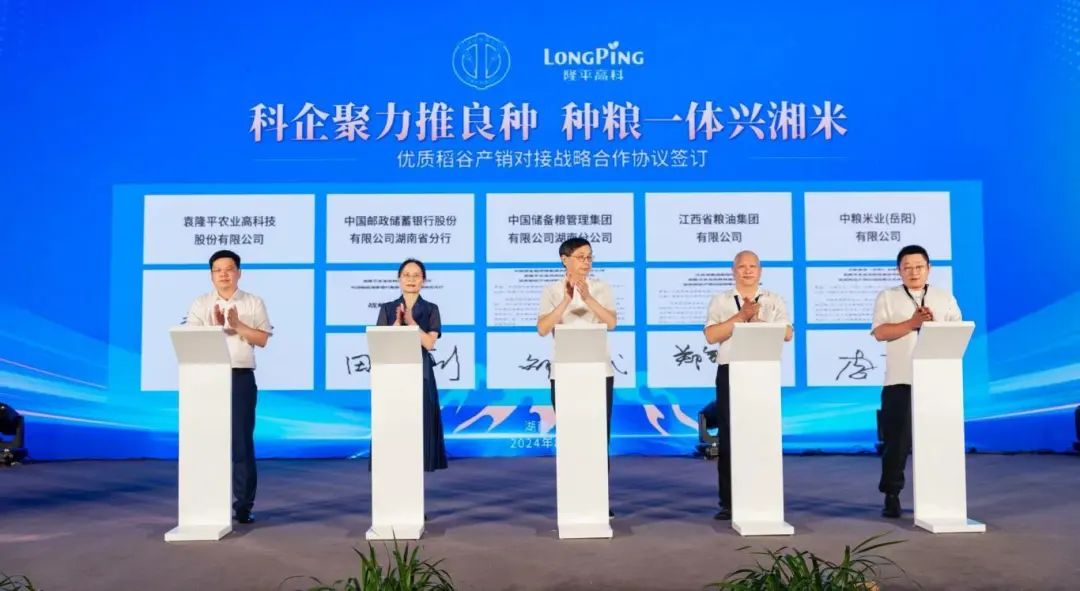 合作,共同攜手振興湘米,隆平高科分別與郵儲(chǔ)銀行湖南分行、中央儲(chǔ)備糧湖南分公司、江西省糧油集團(tuán)、中糧米業(yè)簽署了產(chǎn)業(yè)鏈戰(zhàn)略合作協(xié)議。
