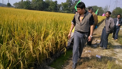 看著這田邊上的一簾又一簾稻穗,參觀人員情不自禁的用手撫摸細(xì)數(shù)。隆兩優(yōu)華占不僅僅穗長(zhǎng),而且著粒密度非常密,有農(nóng)戶說這穗子長(zhǎng)的真是漂亮,四百多粒的穗子一抓一大把,真不敢相信這是二晚的稻田。這位農(nóng)戶還特意跑到對(duì)面采摘了一些*優(yōu)華占的穗子拿過來比較給大家看,他說長(zhǎng)度相差半根手指那么長(zhǎng)。拿到手上掂下就能知道哪個(gè)是隆兩優(yōu)華占哪個(gè)是*優(yōu)華占??梢?,我們隆兩優(yōu)華占已經(jīng)徹底打動(dòng)了大家的心。除此之外,隆兩優(yōu)華占莖稈粗壯,水稻分蘗可達(dá)三十多根。有些人數(shù)的比較仔細(xì),都跑到田塊中間去數(shù)了我們問他怎么樣,他說:“這個(gè)品種真沒的說,不僅外面分蘗好,里面的都能分蘗到二十多根,這產(chǎn)量肯定不錯(cuò)!”