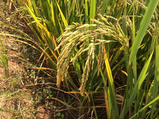 9月6日清晨,宜章地區(qū)的零售商從各鄉(xiāng)鎮(zhèn)紛紛趕來集結(jié)到桂陽縣元芳鎮(zhèn)元芳村。是什么吸引他們輾轉(zhuǎn)幾個小時來到這里?原因只有一個,大家都為目睹中國龍稻的風(fēng)采而來!到了田邊,零售商都像獵人般目不轉(zhuǎn)睛的盯著田中的獵物。先是桂陽代理商吳躍國,介紹隆兩優(yōu)華占于6月20日播種,因為煙田一直騰不出來,拖到7月21日才移栽。但是從苗期開始,生長勢一直很旺。剛開始擔(dān)憂的分蘗,現(xiàn)在看來是多慮了。后期的齊穗時間短,田間易管理。種植戶滿臉笑容的說到:我都不好下田勞作,因為分蘗能力太強了,行間距都長滿了。他表示:之前從來沒有接觸過這么好的品種。安靜的觀摩過后就是驚嘆,因為他們都不敢相信,這么長的秧齡期還有這么好的分蘗,只打了一次藥,但田間未發(fā)現(xiàn)病蟲害。