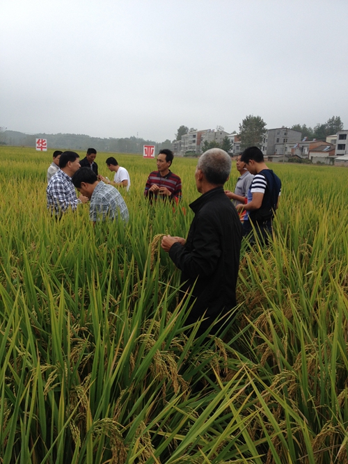 隨行的不少專家聽到介紹,迫不急待的就跑到田間去查看品種的分裂,結實率,抗病性等;“這樣的天氣竟然沒有稻瘟病,稻曲病,這個品種抗性非常好!”,“這個品種的有效分裂平均下來估計都有19根以上!”,“這線子(方言:穗子)好長啊,下面的灌漿也灌滿了,一點癟谷都沒??!”,走在田邊看著大家都在全心投入的觀察著,不時的發(fā)出驚嘆,在這樣的惡劣的天氣環(huán)境下,竟然能有這樣的表現(xiàn),況且是在秧齡期已經達到47天了才移栽的,產量還是這么高,他們都覺得驚奇!