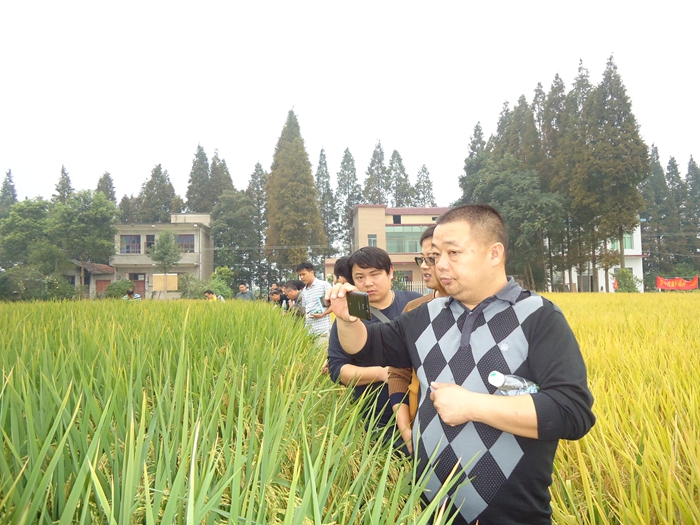 9月25日,常德安鄉(xiāng)縣代理商吳臘梅召集當(dāng)?shù)亓闶凵毯头N田大戶,在益陽(yáng)南縣南洲鎮(zhèn)新陰村9組進(jìn)行了隆兩優(yōu)華占的田間現(xiàn)場(chǎng)觀摩。