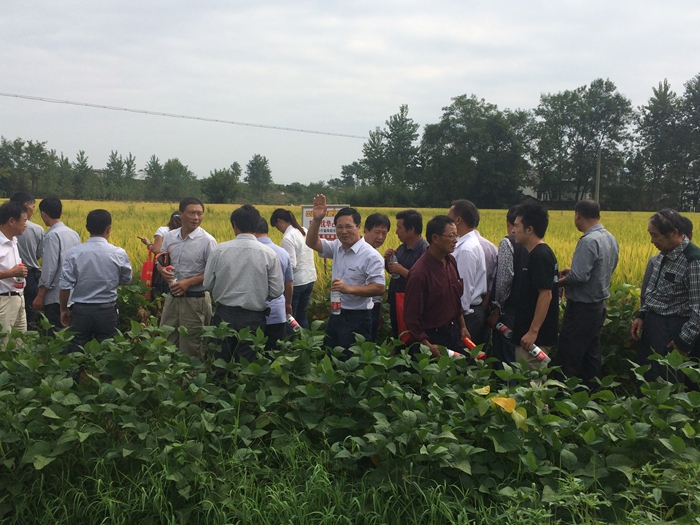 代理商吳斌向大家介紹:今年雨水多氣溫低,很多品種都不同程度的感染稻瘟病和稻曲病,結(jié)實(shí)率就更不行,也有不同程度的倒伏情況,大大影響了農(nóng)戶們的產(chǎn)量,但是你們看看隆兩優(yōu)華占現(xiàn)在的田間表現(xiàn),今年的惡劣氣候?qū)λ稽c(diǎn)影響都沒有,米質(zhì)更好,國(guó)家一級(jí)米,等收割后,我將大米送給大家免費(fèi)品嘗,好品種要和大家一起分享嘛!今天我請(qǐng)了這么多位種田能手來參觀隆兩優(yōu)華占,就是想與大家分享,一家豐收,不算豐收!大家豐收才是豐收??!大家不要看廣告,看產(chǎn)量啊!