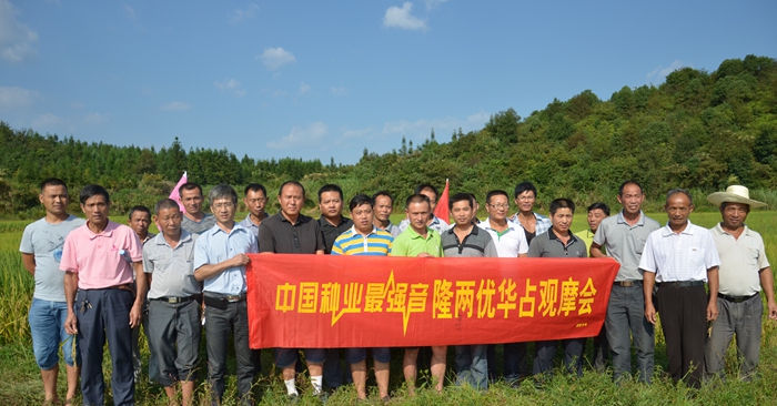 2014年9月21日,萬載羅城鄉(xiāng)麻田村田間來了30多名陌生人,有的俯身稻田仔細觀看,有的忙于拍照留念,好不熱鬧。一問才知,原來他們是專程從宜豐和上高趕來參觀由湖南亞華種子有限公司推出的又一超級稻新品種——隆兩優(yōu)華占。