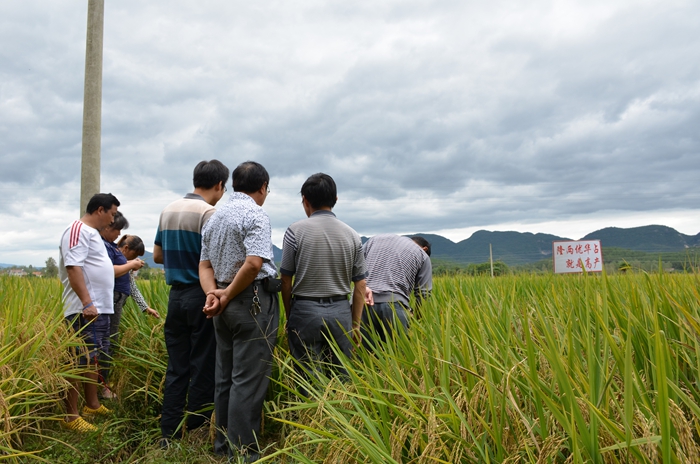 湖北遠(yuǎn)安縣是稻瘟病的高發(fā)區(qū),為了展示中國龍稻-隆兩優(yōu)華占的超高抗特性,亞華種業(yè)特地選擇在此縣進(jìn)行了隆兩優(yōu)華占示范工作。2014年9月19日,亞華種業(yè)代理商汪雄組織了來自各鄉(xiāng)鎮(zhèn)的12位重點零售商,觀摩了該示范田。