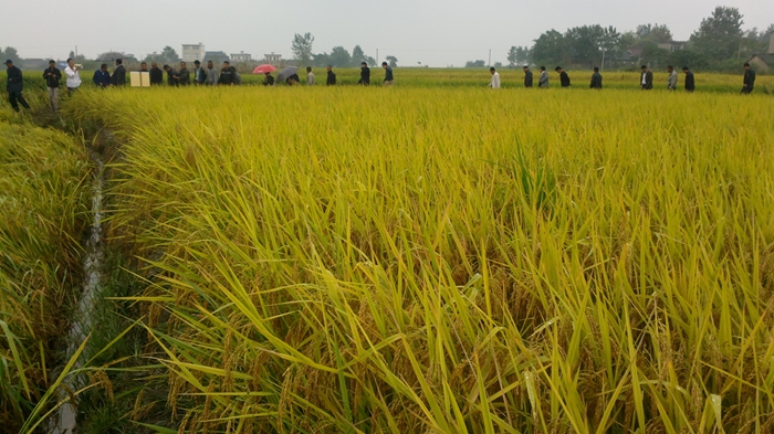 室內(nèi)會議之后,參加此次會議一行40多人,冒著濛濛細(xì)雨來到了隆兩優(yōu)華占觀摩點(diǎn)現(xiàn)場,現(xiàn)場觀摩了該品種。大家仔細(xì)觀察品種,察看植株形態(tài)、病蟲害發(fā)生情況、結(jié)實率、抗倒性、分裂性等情況,大家紛紛一致認(rèn)為,從這些方面來看,隆兩優(yōu)華占綜合表現(xiàn)突出,不愧為中國種業(yè)最強(qiáng)音的稱號!