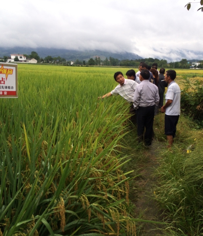 在潛山縣隆兩優(yōu)華占代理商吳斌的邀請(qǐng)下,18號(hào)上午,20余位零售商來到潘鋪鎮(zhèn)河莊村隆兩優(yōu)華占示范田。一進(jìn)入示范田,大家都被隆兩優(yōu)華占的長(zhǎng)勢(shì)所吸引,零售們紛紛下田,數(shù)有效穗的、有數(shù)粒數(shù)的、有觀察結(jié)實(shí)率的忙個(gè)不停,大家都表示,今年安徽8月份以來天氣一直以低溫多雨為主,在這樣的年份里隆兩優(yōu)華占卻表現(xiàn)出分蘗力強(qiáng)、葉青籽黃,結(jié)實(shí)率達(dá)到90%以上、莖稈粗壯、更難得是無病蟲害等諸多優(yōu)秀特性。今年很多品種都得了稻瘟病、稻曲病,而隆兩優(yōu)華占依然屹立不倒、長(zhǎng)勢(shì)清秀實(shí)屬難得,大家紛紛下田拍照合影。