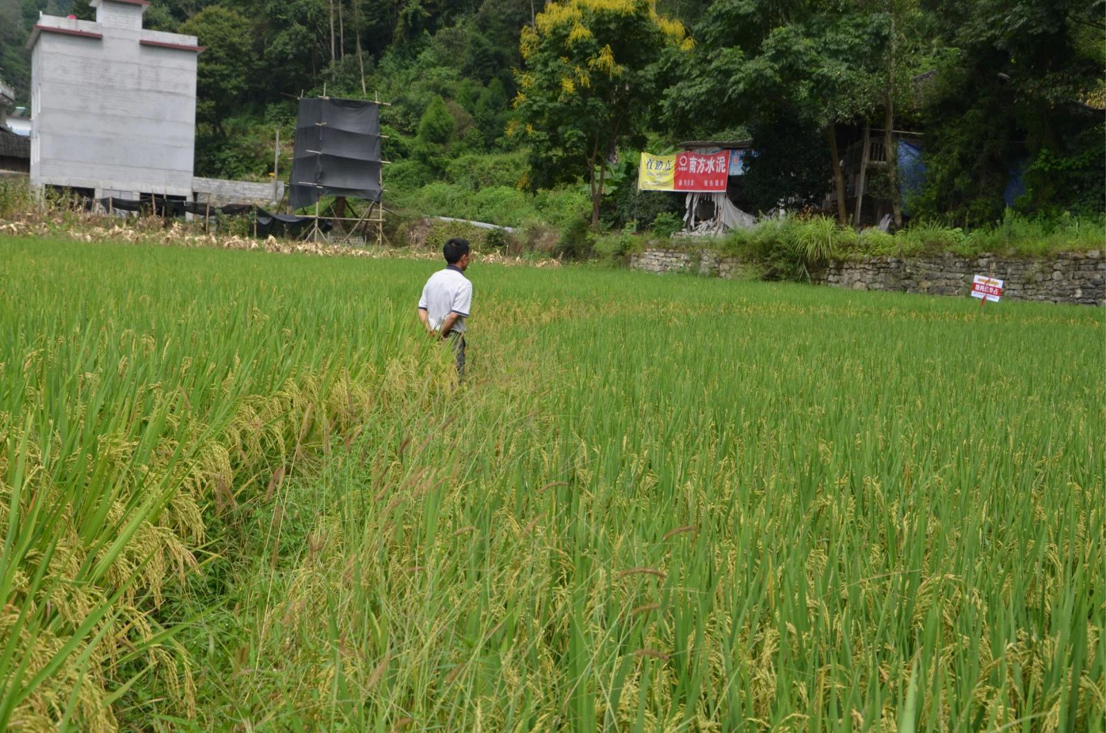 就是這樣紅色的普戎,卻是保靖縣農(nóng)業(yè)人的心??!由于自然條件的限制,用“三山兩溝巴掌大的幾丘田”來形容也不為過,在該鎮(zhèn)推廣的水稻品種,必須保證稻瘟病抗性過關(guān),在其他地方隨便可以種植的水稻品種,特別是兩系超級(jí)稻品種,在該地種植面臨著巨大的風(fēng)險(xiǎn)。特別是今年,保靖縣的農(nóng)業(yè)生產(chǎn)經(jīng)歷了嚴(yán)酷的考驗(yàn),大面積的水稻感染稻瘟病,特別是該縣老百姓一直喜歡種植的以Y兩優(yōu)系列為代表的超級(jí)稻品種,在本次考驗(yàn)中嚴(yán)重染病,很多農(nóng)田大面積減產(chǎn),甚至絕收,給老百姓帶來了很大的損失!而亞華種業(yè)的中國龍稻——隆兩優(yōu)華占,在重病之年展現(xiàn)超級(jí)實(shí)力,抵擋住了前期低溫、中期高溫、尾期低溫的各種考驗(yàn),在保靖縣普戎鎮(zhèn)這個(gè)稻瘟病區(qū)大顯身手!