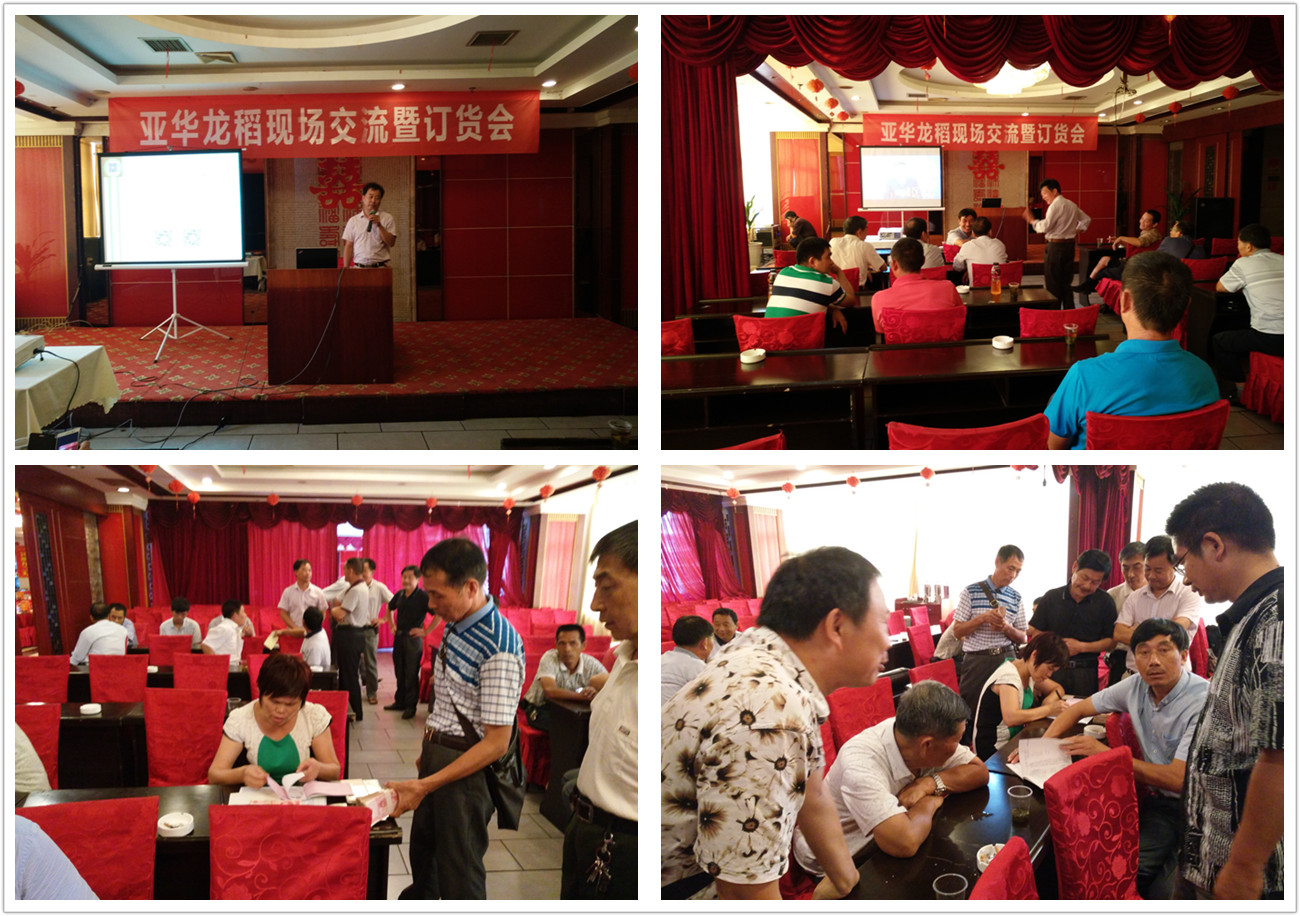 觀摩后在八方賓館進(jìn)行了交流與定購(gòu),亞華種業(yè)劉松經(jīng)理就預(yù)定營(yíng)銷政策進(jìn)行了解析,并對(duì)亞華龍稻的栽培技術(shù)作了強(qiáng)調(diào),大家一致認(rèn)為“亞華龍稻”是目前最好的一個(gè)品種:產(chǎn)量高、抗性好、米質(zhì)優(yōu)、抗倒強(qiáng),明年要加大宣傳力度、擴(kuò)大辦點(diǎn)規(guī)模、加強(qiáng)技術(shù)培訓(xùn)、擴(kuò)大種植面積,6個(gè)種植“亞華龍稻”的鄉(xiāng)鎮(zhèn)介紹了種植情況與栽培技術(shù),并認(rèn)為還可改進(jìn)方法提高產(chǎn)量,首先是要插足基本苗,大苗洗插每畝大田用種量1公斤,拋秧與撒播每畝大田用種量1.25----1.5公斤;再就是施足肥料,每畝大田施45%含量的復(fù)合肥40公斤,尿素10公斤,氯化鉀10公斤,這樣能達(dá)到更高的產(chǎn)量,大大提高農(nóng)戶的種植效益。