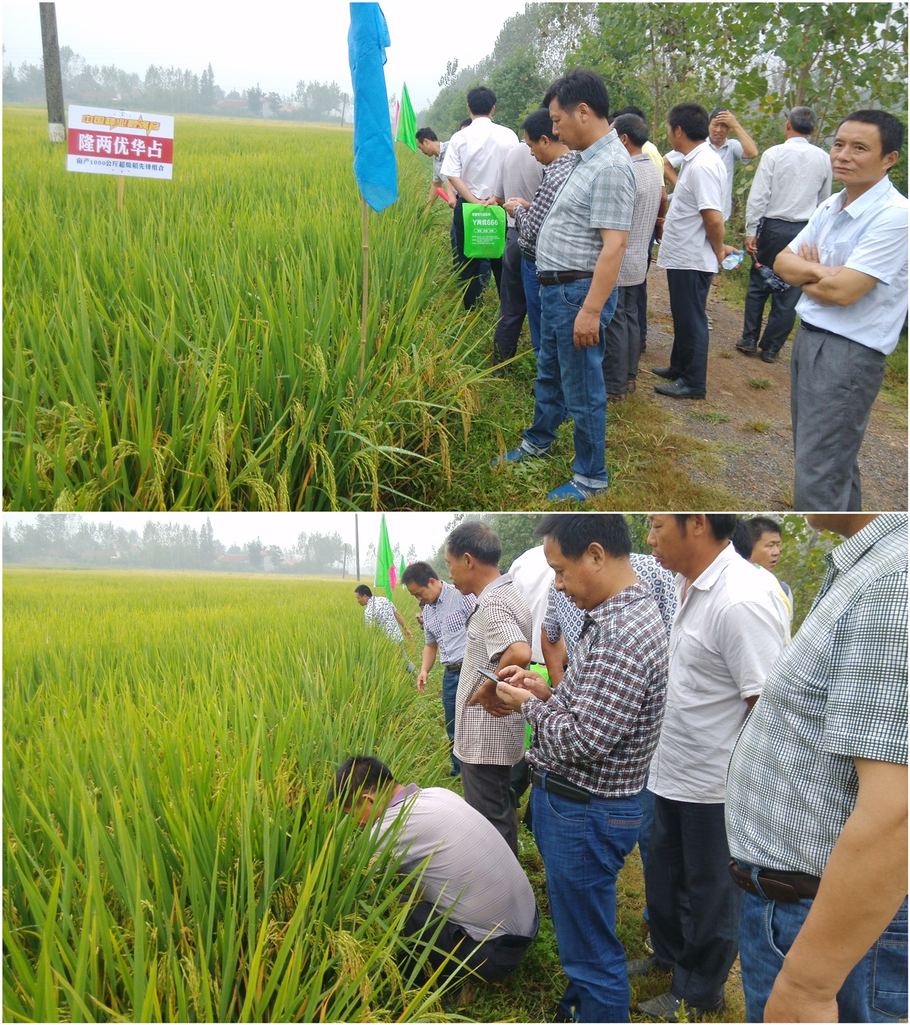 2015年9月4日上午9時(shí)許,湖北省荊門市京山縣的80多位零售商和種田大戶,在代理商張群的帶領(lǐng)下冒雨來到了羅店鎮(zhèn)的隆兩優(yōu)華占示范田中進(jìn)行觀摩。