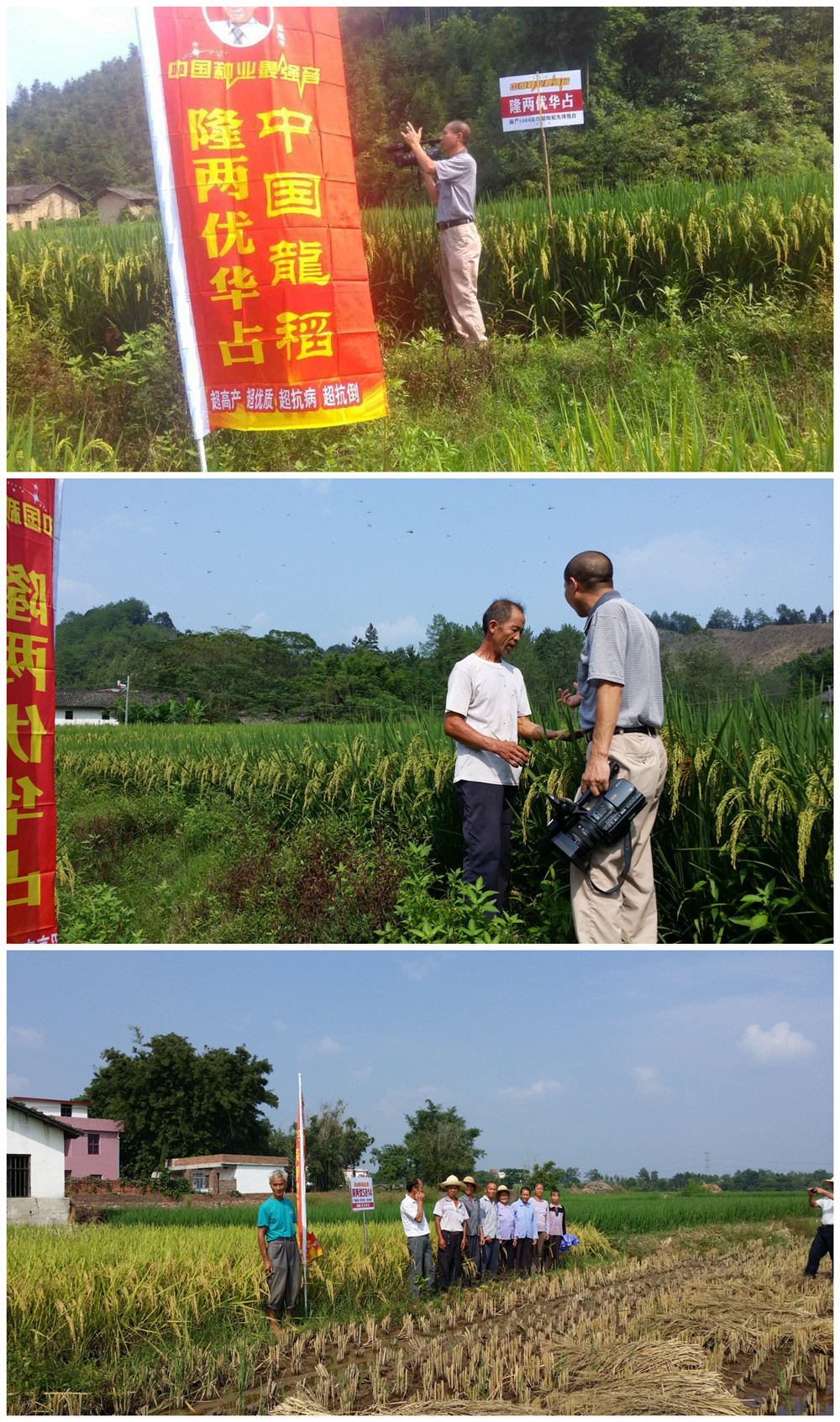 2015年9月初,亞華種業(yè)銷售經(jīng)理鄒容、代理商信豐袁善興,一起誠邀信豐縣電視臺“三農(nóng)天地”欄目組、縣農(nóng)業(yè)局高級農(nóng)藝師劉玉生先生,同基層經(jīng)銷商一起,組織糧農(nóng)們召開了一場如火如荼的“迎豐收、看好種”農(nóng)民會。各鄉(xiāng)鎮(zhèn)到處都呈現(xiàn)深兩優(yōu)5814、亞華龍稻、隆兩優(yōu)華占的豐收場面。
