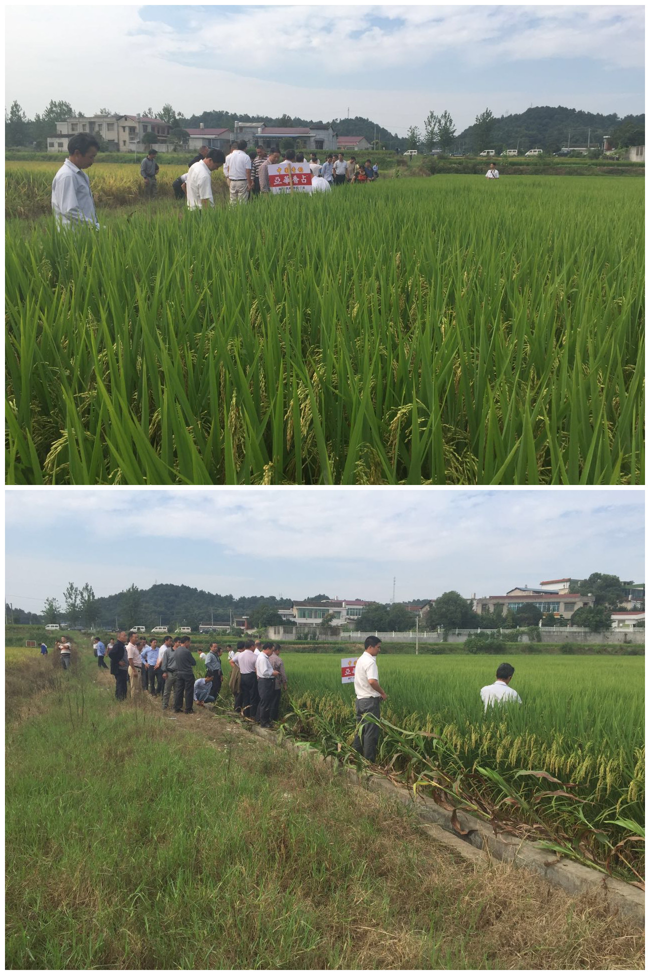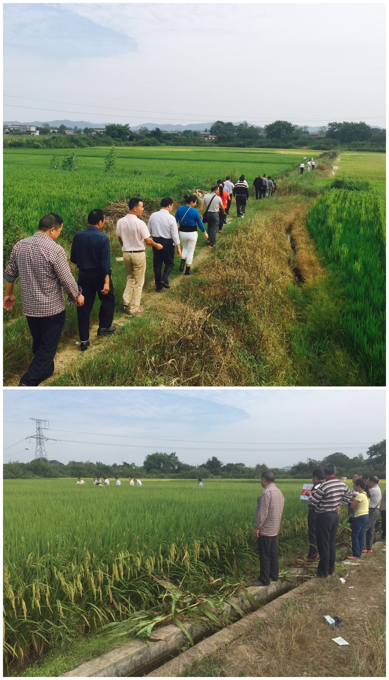 完成室內(nèi)會(huì)議后,參會(huì)人員統(tǒng)一乘車(chē)到達(dá)大成橋鎮(zhèn)進(jìn)行田間觀摩。該示范田是大成橋鎮(zhèn)零售商鄧海波種植的,共有五十畝。鄧?yán)习遄叩教镏虚g一邊拉著長(zhǎng)長(zhǎng)的穗子,一邊向參會(huì)人員詳細(xì)介紹亞華香占的特征、特性、種植管理經(jīng)驗(yàn)。據(jù)他介紹,此次觀摩的亞華香占五十畝示范田,主要以移栽、直播兩種形式種植,均表現(xiàn)出強(qiáng)分蘗、強(qiáng)抗病性以及強(qiáng)抗倒性,并對(duì)粗放管理的亞華香占的整體表現(xiàn)非??隙?,估計(jì)產(chǎn)量折合干谷近1550~1600斤/畝。零售商們邊聽(tīng)邊仔細(xì)觀察著亞華香占的表現(xiàn),大家紛紛贊嘆亞華香占是個(gè)好品種!