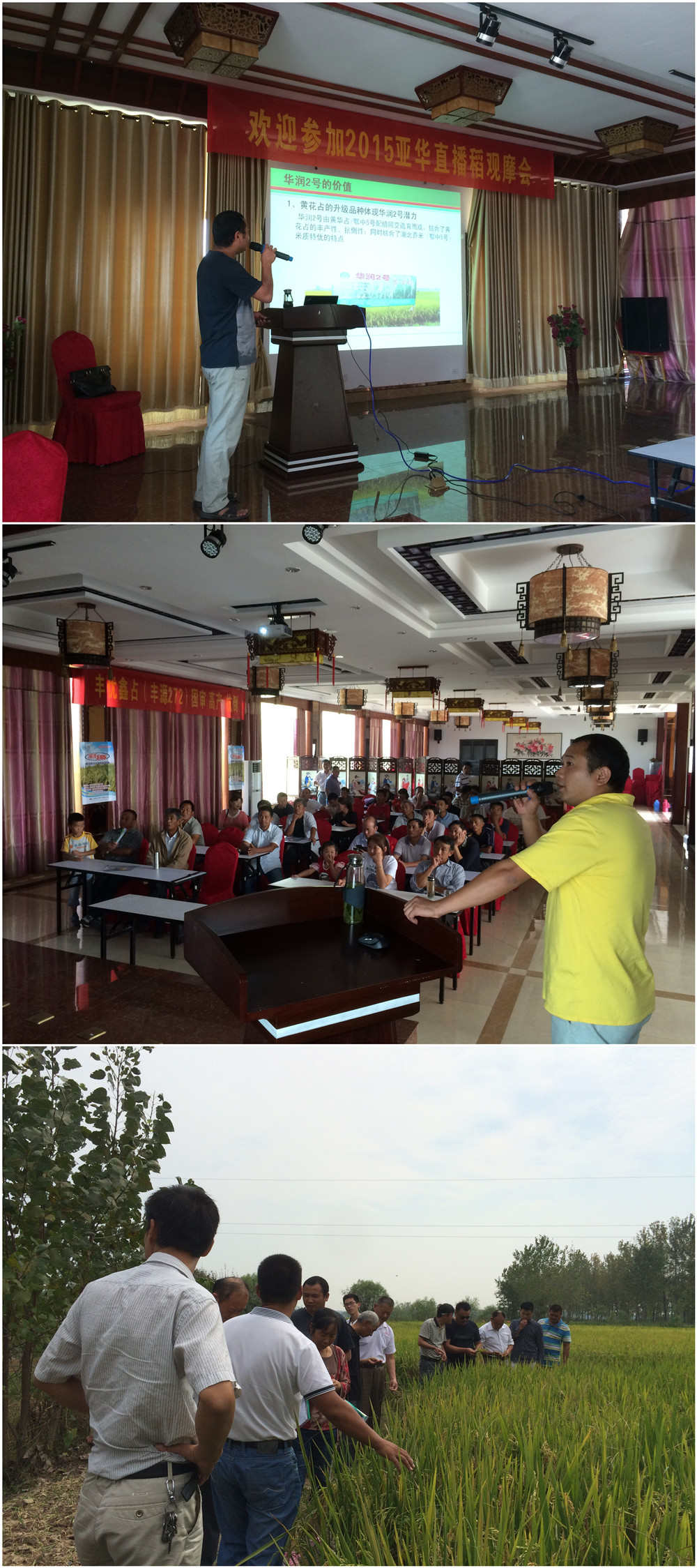 2015年9月19、20日,在安徽壽縣代理商賈總的組織下,連續(xù)兩天召開了亞華直播稻觀摩會。此次會議向各鄉(xiāng)鎮(zhèn)零售商展示了亞華種業(yè)的強勢直播稻品種:華潤2號、深優(yōu)5105、深兩優(yōu)6號以及豐優(yōu)鑫占。