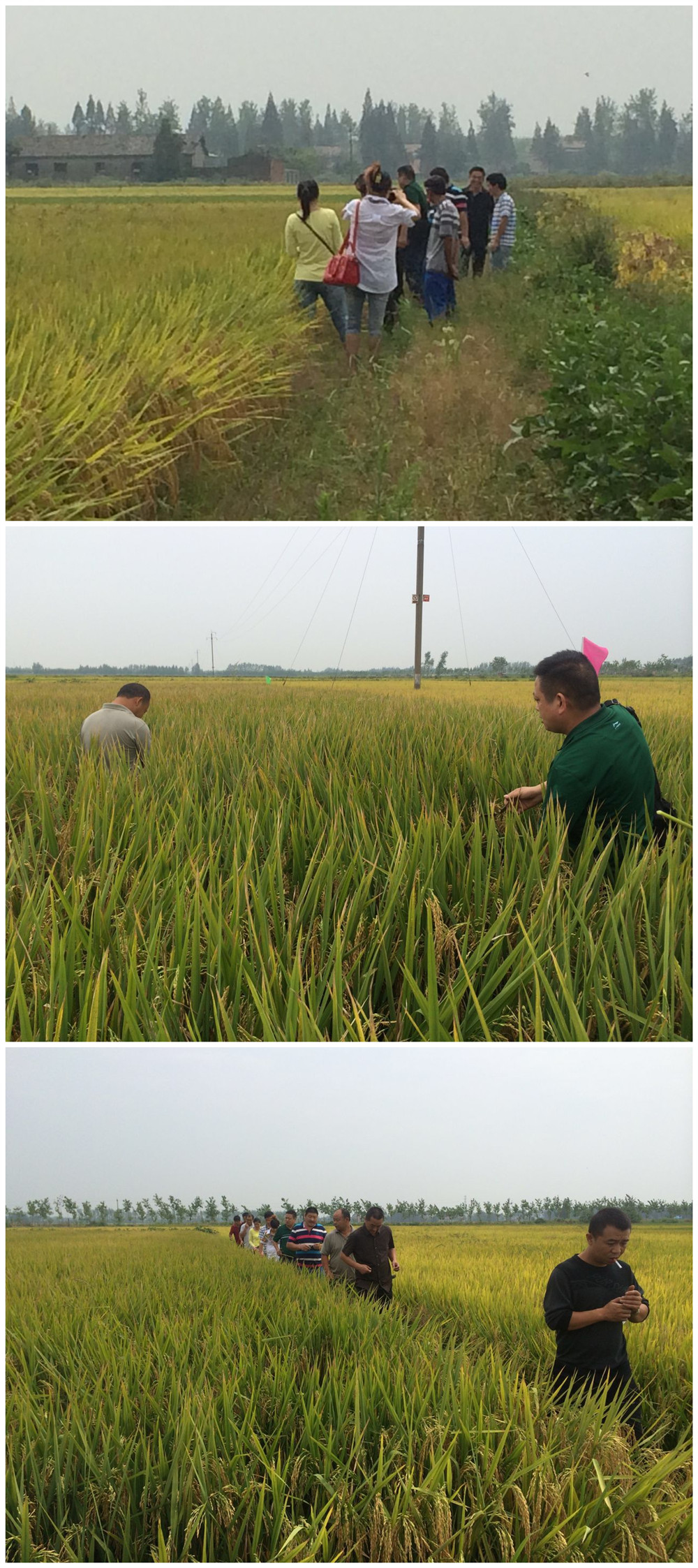 一到現(xiàn)場,大家都被隆兩優(yōu)華占的田間表現(xiàn)吸引,迫不及待地下到田中間數(shù)分蘗,看穗子大小,有的拿出手機拍照,不時發(fā)出贊嘆聲!