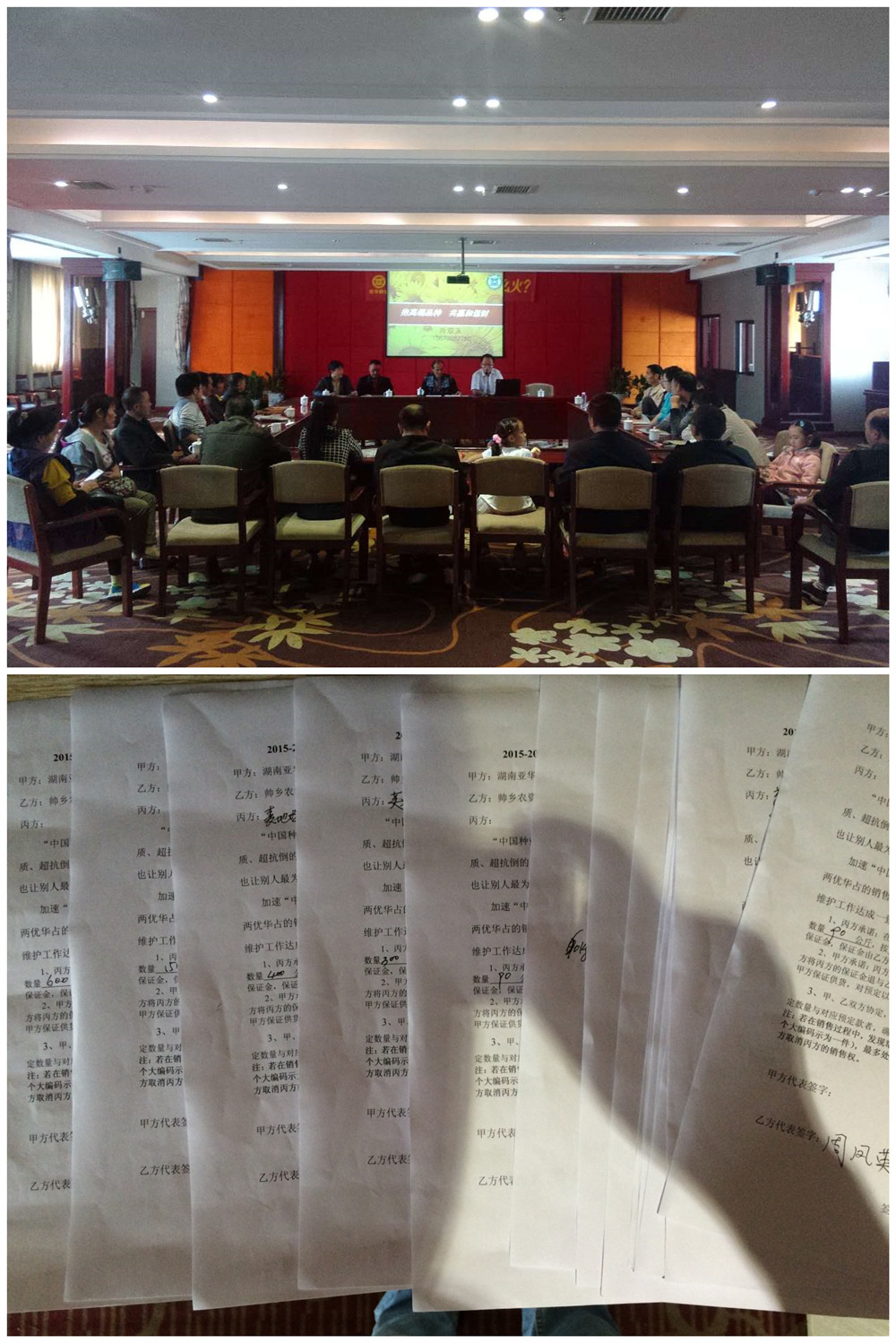 會議由湖南亞華種子有限公司業(yè)務(wù)經(jīng)理肖雙來主持,他首先介紹了亞華種業(yè)以及其旗下重點推廣品種——隆兩優(yōu)華占的特征特性,隨后還介紹了隆兩優(yōu)華占在國內(nèi)的形勢、銷售模式、市場維護方案等。隨后大家就市場維護進行討論,最終達成一致并簽署協(xié)議,足見大家想維護好市場的誠意!