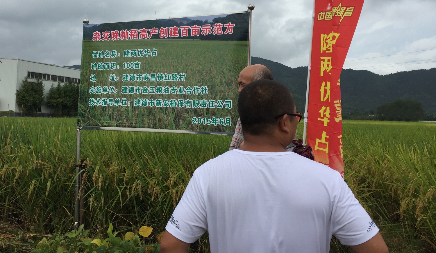此次會議最大的看點,是建德市壽昌鎮(zhèn)紅路村金玉糧油專業(yè)合作社隆兩優(yōu)華占百畝連片示范田。去年,金玉糧油專業(yè)合作社社長陶金富直播試種了5畝隆兩優(yōu)華占,稻谷收獲加工成米就被附近村民一搶而光。隆兩優(yōu)華占因米質(zhì)優(yōu)異、穩(wěn)產(chǎn)性好、易種好管,且生育期比當?shù)仄渌贩N短5-7天,經(jīng)常出現(xiàn)供不應(yīng)求的現(xiàn)象。因為種子供應(yīng)極為緊缺,今年金玉糧油專業(yè)合作社想方設(shè)法要到種子,將種植面積擴大到了100畝。陶金富介紹:“今年氣候條件不太好,但隆兩優(yōu)華占表現(xiàn)穩(wěn)定,抽穗期陰雨連綿日照少,目前看來結(jié)實率仍可達85%以上,也沒有稻瘟病,估計平均畝產(chǎn)能達到1400斤,高產(chǎn)田塊能達到1600斤每畝。更關(guān)鍵的是這百畝示范片今年僅打過一次防二化螟農(nóng)藥。表現(xiàn)非常不錯”!