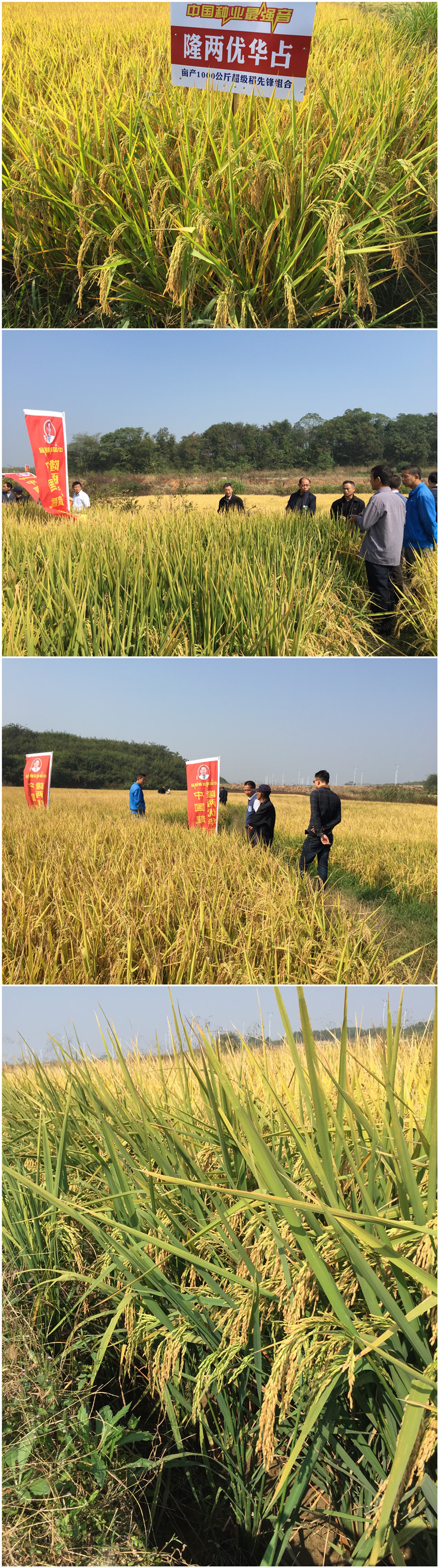 2015年10月18日,清風(fēng)徐徐,紅旗飄飄,江西彭澤縣代理商劉澤小組織了本縣各鄉(xiāng)鎮(zhèn)經(jīng)銷商和種田大戶齊聚黃花鎮(zhèn),成功開展了隆兩優(yōu)華占在彭澤縣的觀摩會首秀。