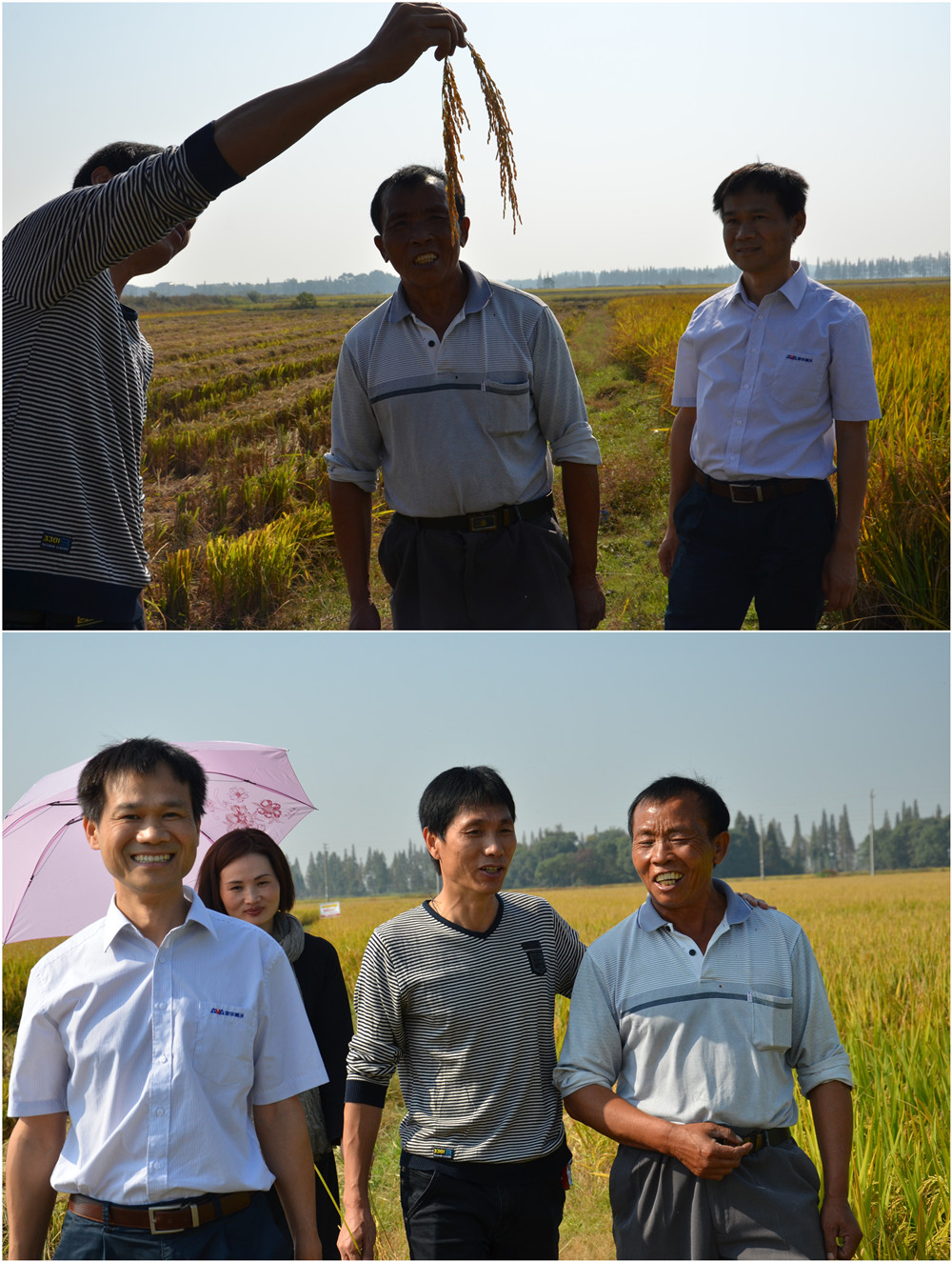 2015年10月21號(hào),湖南亞華種子有限公司總經(jīng)理青志新、江西分公司總經(jīng)理谷恩華、副總經(jīng)理馬建國(guó)以及代理商鄭新明等一行人來(lái)到江西鄱陽(yáng)縣古南鎮(zhèn)桂家村,實(shí)地考察亞華種業(yè)今年一舉通過(guò)國(guó)審、贛審、湘審的水稻新秀——隆兩優(yōu)華占的田間表現(xiàn),以及了解種植戶反饋的情況。