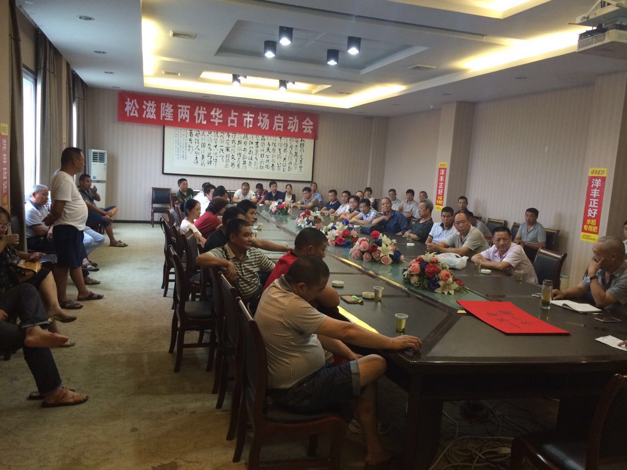 2016年8月9日,湖南亞華種子有限公司松滋區(qū)域代理商吳用組織召開了2016-2017年度隆兩優(yōu)華占市場啟動會,共計30多位零售商參會。當天上午陣風伴雨悄然來襲,一直到會議開始都未停歇,但這并未降低大家對本次會議的重視度,受邀請的鄉(xiāng)鎮(zhèn)零售商們均按時到達會場。