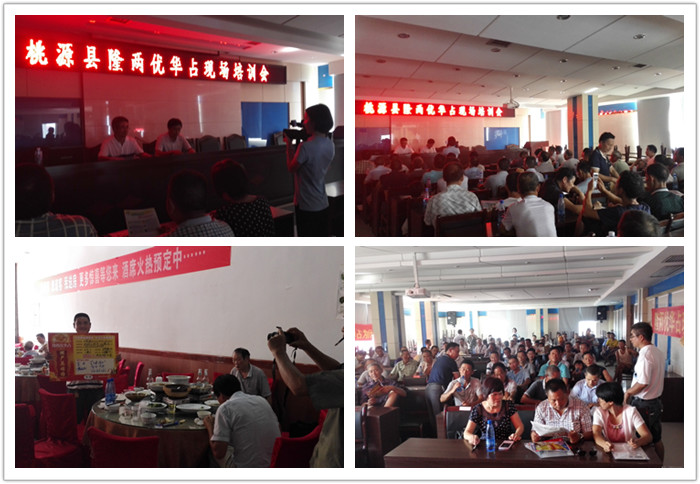 在室內(nèi)會(huì)場(chǎng)上,鄉(xiāng)鎮(zhèn)經(jīng)銷(xiāo)商及種植大戶(hù)代表紛紛發(fā)言,分享了在推廣和種植過(guò)程中的經(jīng)驗(yàn)及品種認(rèn)識(shí),簡(jiǎn)單的說(shuō)就是種的放心、看著舒心。桃源縣興隆米業(yè)負(fù)責(zé)人針對(duì)現(xiàn)行的糧食收購(gòu)形式進(jìn)行分析和講解,重點(diǎn)突出了再生稻米質(zhì)的優(yōu)勢(shì),并表示愿意對(duì)隆兩優(yōu)占客戶(hù)再生稻第二季稻谷進(jìn)行合同式收購(gòu),切實(shí)保證高產(chǎn)情況下農(nóng)民的收入。會(huì)上,亞華種業(yè)區(qū)域經(jīng)理覃兵從公司及全國(guó)推廣的角度,介紹了隆兩優(yōu)華占的品種優(yōu)勢(shì)及再生稻栽培關(guān)鍵技術(shù)。代理商結(jié)合公司政策,鼓勵(lì)農(nóng)戶(hù)積極預(yù)定,切實(shí)讓種植大戶(hù)們享受到預(yù)定優(yōu)惠,讓更多的農(nóng)戶(hù)種上好品種!。