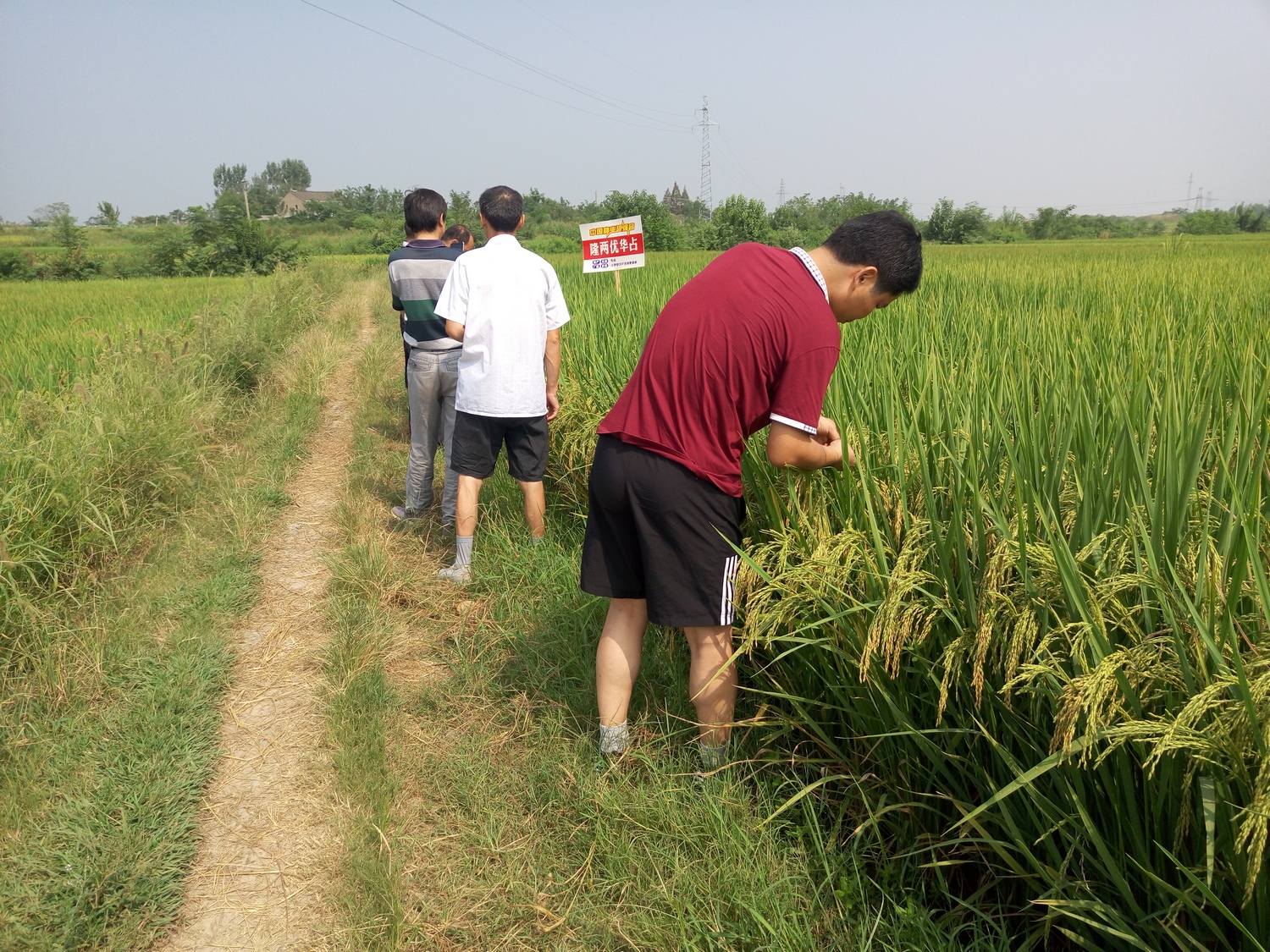 2016年8月25日早上8點,應城市各鄉(xiāng)鎮(zhèn)二十余位經(jīng)銷商齊聚一起,從應城代理商楊文俊楊總的門店出發(fā),驅(qū)車前往應城市陳河鎮(zhèn)的隆兩優(yōu)華占觀摩稻田。