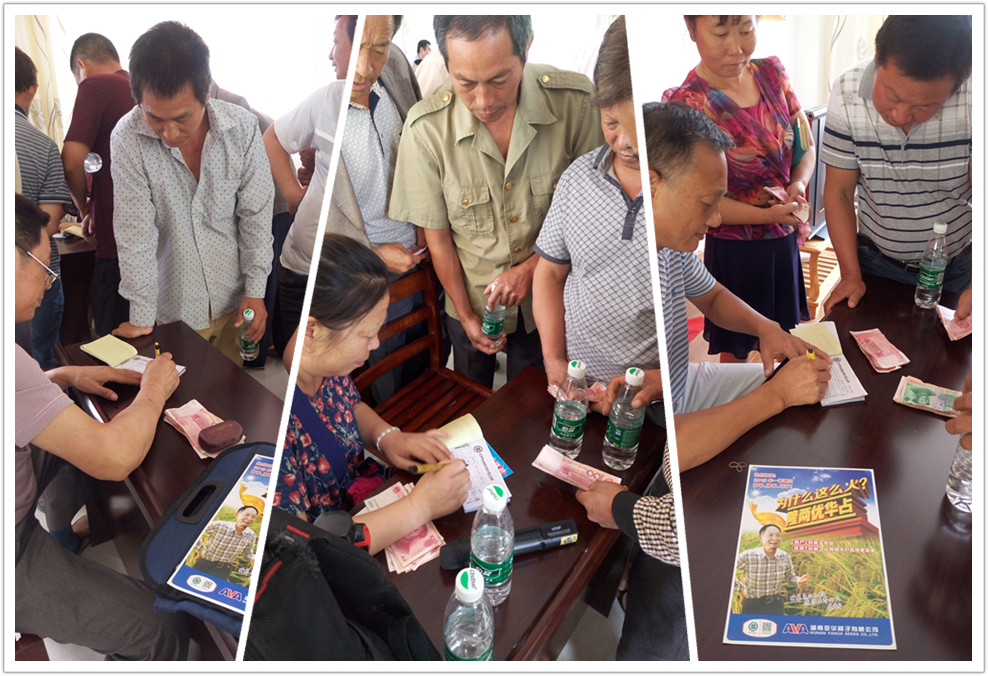 通過品種介紹、栽培技術(shù)培訓(xùn),結(jié)合農(nóng)戶今年種植優(yōu)秀表現(xiàn),老百姓紛紛排隊(duì)交錢預(yù)定種子,35人參加會議,其中27位農(nóng)戶合計(jì)預(yù)定了3005斤隆兩優(yōu)華占。此次訂購會的圓滿召開,為隆兩優(yōu)華占下一步預(yù)定工作奠定了堅(jiān)實(shí)的基礎(chǔ)。