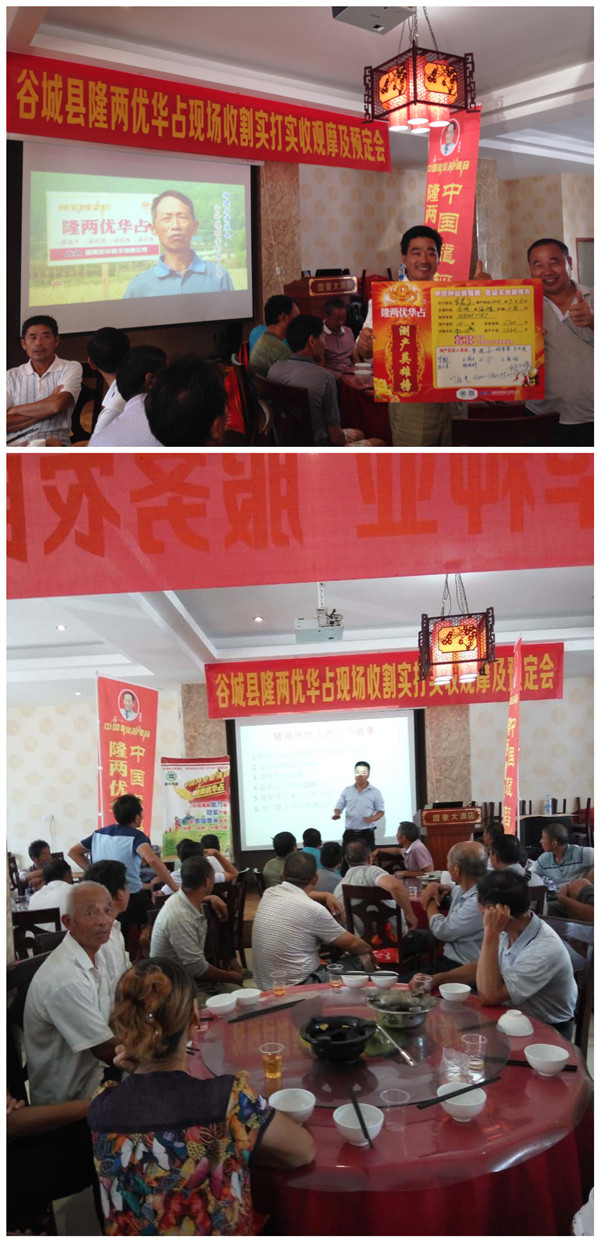 測(cè)產(chǎn)過(guò)后,大家歡聚一堂。亞華種子公司的黃經(jīng)理對(duì)田間測(cè)產(chǎn)情況作了分析并介紹了隆兩優(yōu)華占的特征特性和在湖北各地近三年的種植表現(xiàn)情況。隨后,代理商張祥友宣布了相關(guān)的預(yù)定政策。大家爭(zhēng)先恐后的交款預(yù)定,把會(huì)議氣氛推向了高潮。