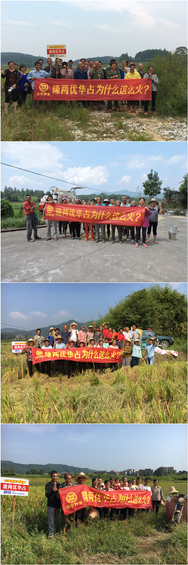 2016年9月16日起,在新干縣掀起了隆兩優(yōu)華占收割測產的風暴,在七琴、潭丘、金川等鄉(xiāng)鎮(zhèn)隆兩優(yōu)華占也陸陸續(xù)續(xù)開始收割了,有些村莊幾百畝連片種植,隆兩優(yōu)華占無人不知無人不曉,就是因為在今年這樣的不利天氣下,隆兩優(yōu)華占依舊能高產,給農民帶去豐收。