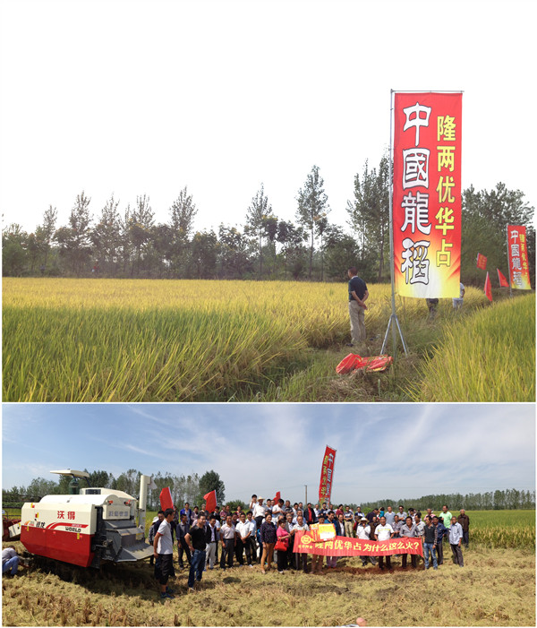 位于安徽壽縣十字路隆兩優(yōu)華占田塊雖然經(jīng)受了較長(zhǎng)時(shí)間極端天氣的考驗(yàn),仍然長(zhǎng)勢(shì)整齊一致,無(wú)病蟲害發(fā)生,無(wú)倒伏,結(jié)實(shí)率達(dá)到80%以上。2016年9月20日,觀摩會(huì)現(xiàn)場(chǎng)彩旗招展、收割機(jī)引擎轟鳴,在參會(huì)嘉賓的共同見(jiàn)證下,通過(guò)現(xiàn)場(chǎng)收割、GPS測(cè)量面積、水分測(cè)量?jī)x測(cè)量水分,實(shí)測(cè)干谷1533斤/畝的較高產(chǎn)量,得到大家一致認(rèn)可和贊揚(yáng)??偨Y(jié)大家對(duì)隆兩優(yōu)華占的評(píng)價(jià):確確實(shí)實(shí)在連續(xù)高溫干旱的天氣下經(jīng)受得住考驗(yàn),抗高溫能力非常強(qiáng);從田間表現(xiàn)來(lái)看,確確實(shí)實(shí)抗病抗倒能力比較強(qiáng);極端天氣仍然收獲這么高的產(chǎn)量,確確實(shí)實(shí)高產(chǎn)穩(wěn)產(chǎn)優(yōu)勢(shì)較強(qiáng)。