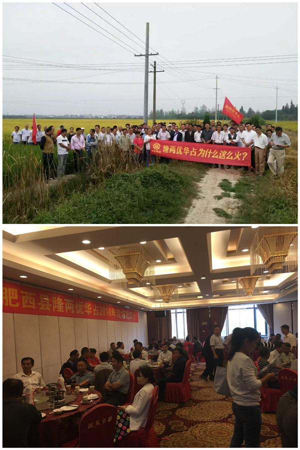 2016年9月21號由合肥潤禾農(nóng)業(yè)科技有限公司組織肥西縣近百人的零售商及種田大戶,浩浩蕩蕩的趕到位于四豐公路旁的中國龍稻--隆兩優(yōu)華占示范田。