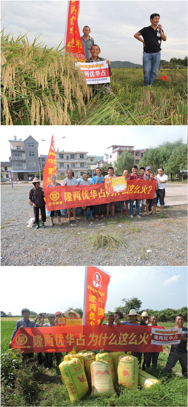 2016年的金秋時(shí)光,在弋陽(yáng)可謂是美不勝收。因?yàn)橛幸慌?ldquo;隆粉”——旗山、靈畈、清湖、中畈、烈橋等鄉(xiāng)鎮(zhèn)零售商在豐收季節(jié)的田間吹響了隆兩優(yōu)華占測(cè)產(chǎn)會(huì)的號(hào)角。