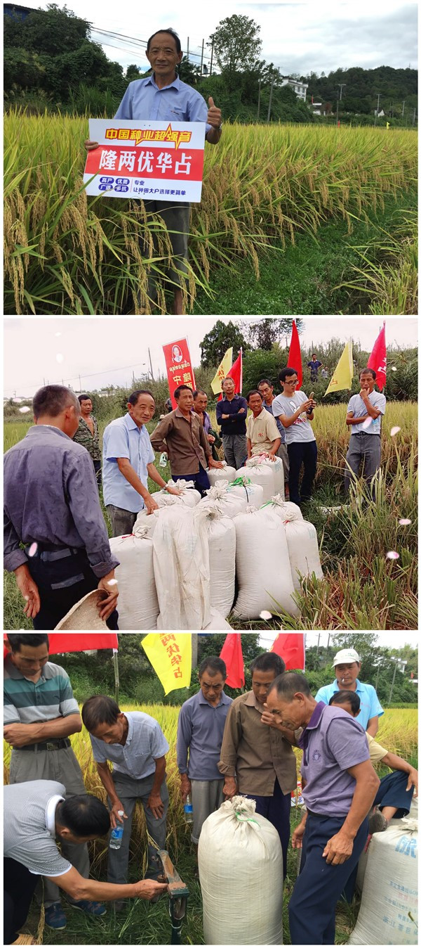 青瓦白墻檐下屋,不知曲巷深何處。幸得美景雨后出,更有龍稻入畫圖。在被喻為最美鄉(xiāng)村的婺源,隆兩優(yōu)華占憑借出色的品種優(yōu)勢,在今年這種持續(xù)高溫條件下,仍舊表現(xiàn)優(yōu)異,成就了婺源的一道獨立的風景線。2016年9月17日,婺源縣各鄉(xiāng)鎮(zhèn)零售商以及種田大戶八十余人齊聚賦春鎮(zhèn)盤坑村,共同目睹了隆兩優(yōu)華占美麗風采,并見證了隆兩優(yōu)華占實割高產(chǎn)喜獲豐收。
