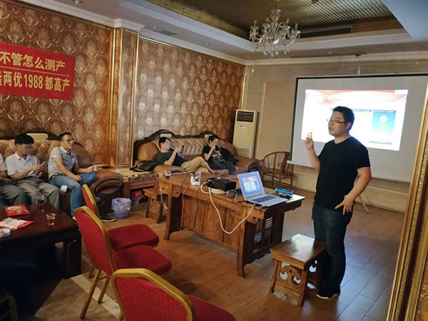 在品嘗了“財神飯”之后,由博白經(jīng)銷商陳總主持,亞華百分農(nóng)業(yè)廣西負(fù)責(zé)人龍總主講。龍總向大家詳細(xì)講解了公司政策和隆兩優(yōu)1988品種的具體情況,大家也積極參與討論,紛紛表示對隆兩優(yōu)1988晚造市場銷售信心十足。
