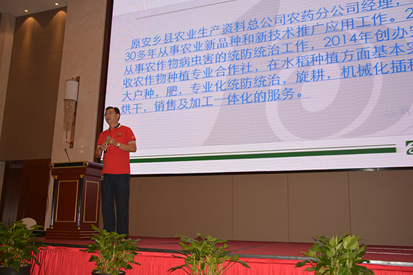 其次,百分農(nóng)業(yè)財(cái)神產(chǎn)品線產(chǎn)品經(jīng)理陳鋒發(fā)表講話,從財(cái)神稻各地的表現(xiàn)、百分農(nóng)業(yè)市場管控及后續(xù)優(yōu)勢產(chǎn)品介紹三個(gè)方面做了闡述,獲得臺下陣陣掌聲。