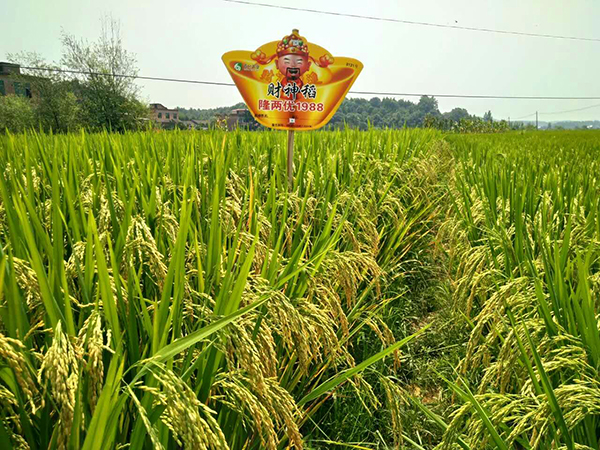 在2017年初百分農(nóng)業(yè)將隆兩優(yōu)1988(財(cái)神稻)重慶省級示范田設(shè)在南川區(qū)大觀鎮(zhèn)。大觀鎮(zhèn)是一個(gè)全國鄉(xiāng)村旅游示范區(qū),為了讓廣大農(nóng)戶更加富裕,黨和國家在行動,湖南百分農(nóng)業(yè)也在行動,百分農(nóng)業(yè)為南川老百姓帶帶來了“財(cái)神稻”。