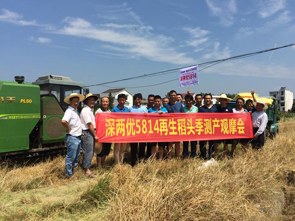 此次觀摩會邀請到了瀏陽市農(nóng)業(yè)部的測產(chǎn)專家、瀏陽市深兩優(yōu)5814的零售商及周邊大戶進行現(xiàn)場觀摩,并一起見證在瀏陽連續(xù)推廣了7年的經(jīng)典中稻品種深兩優(yōu)5814再生稻頭季的測產(chǎn)。