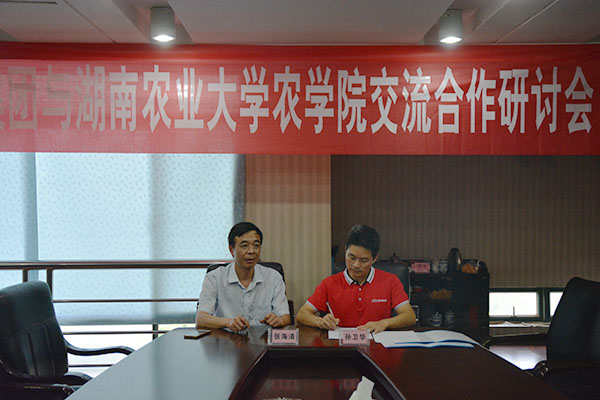 會后,孫衛(wèi)華先生與張海清院長共同簽訂了《湖南農(nóng)業(yè)大學(xué)與用人單位建立畢業(yè)生就業(yè)基地合作意向書》,雙方希望在未來企業(yè)員工繼續(xù)教育、畢業(yè)生就業(yè)與實(shí)習(xí)等方面加強(qiáng)校企合作,實(shí)現(xiàn)共同發(fā)展。