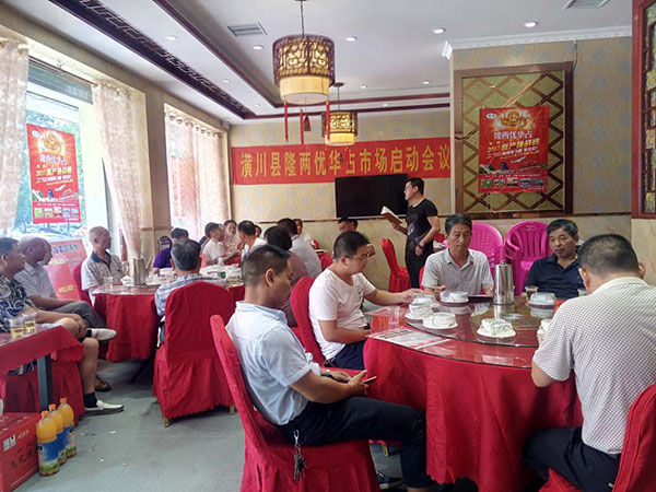 隨后大家來(lái)到室內(nèi)會(huì)場(chǎng),首先由代理商劉總對(duì)大家的到來(lái)表示熱烈歡迎。隨后亞華種業(yè)區(qū)域經(jīng)理許樹(shù)濱就公司基本情況、隆兩優(yōu)華占的八大優(yōu)勢(shì)、品種的運(yùn)作模式、品牌的重要性、市場(chǎng)維護(hù)及后續(xù)品種等方面向大家做了詳細(xì)介紹,最后代理商劉總就今年的銷(xiāo)售政策做了詳細(xì)介紹,堅(jiān)決執(zhí)行預(yù)定政策。