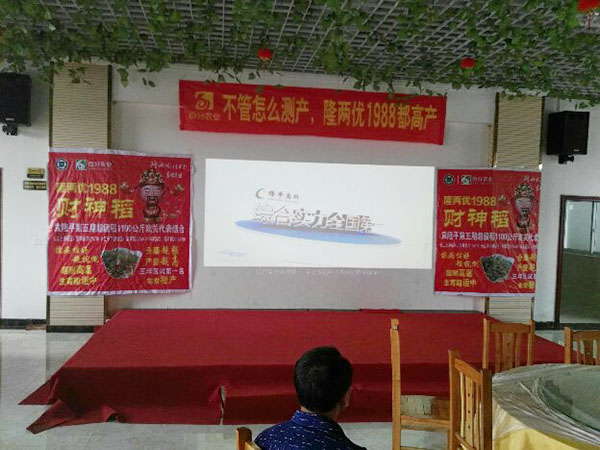 十點整,訂購會正式開始,主持人周老板上臺簡單介紹本次會議議程,接著胡經(jīng)理上臺介紹了公司發(fā)展狀況,講解財神稻隆兩優(yōu)1988的品種由來及產(chǎn)品特征特性,臺下的農(nóng)戶們也認真參與互動提出了自己的疑問,胡經(jīng)理則一一解答。最后主持人周老板宣布訂購開始,訂購非?;鸨?,共訂購了一千多斤。