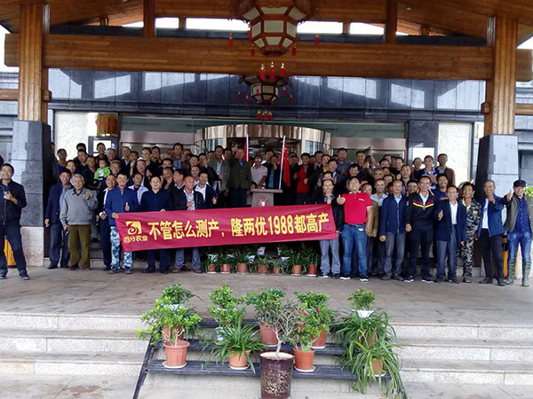 回到會場,先有百分農業(yè)李經理對隆兩優(yōu)1988做介紹,百分農業(yè)湖北大區(qū)經理魏經理對公司現(xiàn)狀和目前湖北種業(yè)現(xiàn)狀以及隆兩優(yōu)1988后期發(fā)展規(guī)劃進行了詳細的解讀。最后代理商陳總為大家講解目前廣水地區(qū)種業(yè)現(xiàn)狀并指出隆兩優(yōu)1988超抗病、超抗倒、超高產這三個特性是非常切合廣水優(yōu)質稻市場的需求。在陣陣稱贊與叫好聲中,到會的零售商和種植大戶可謂乘興而來,盡興而歸,隆兩優(yōu)1988的表現(xiàn),也在廣水零售商和種植大戶心中留下了極好印象。