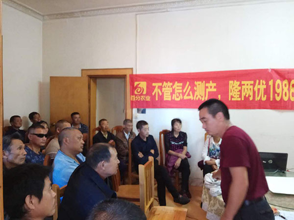 組織好種植戶(hù)回到會(huì)議室內(nèi),會(huì)議首先由百分農(nóng)業(yè)袁經(jīng)理總結(jié)隆兩優(yōu)1988的高產(chǎn)、抗病、抗倒性及米質(zhì)優(yōu)的幾大優(yōu)勢(shì)表現(xiàn),下面種植戶(hù)紛紛表示隆兩優(yōu)1988在今年能有如此表現(xiàn),已經(jīng)是非常滿(mǎn)意了。最后,由財(cái)神稻代理商朱錦華進(jìn)行講解預(yù)訂種子送獎(jiǎng)品政策,不到30分鐘,現(xiàn)場(chǎng)就完成預(yù)訂680斤,現(xiàn)場(chǎng)非?;鸨?!