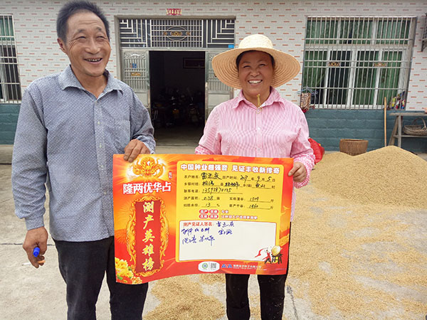 戶主雷正慶對這樣的結果很滿意,臉上露出了滿意的笑容。他說,往年種過很多品種,高低價位不等,產(chǎn)量一直上不去,年成好的時候最高也就在1200斤左右。今年通過毛老板的推薦種了隆兩優(yōu)華占,這樣的高溫天氣下產(chǎn)量表現(xiàn)讓他喜出望外。