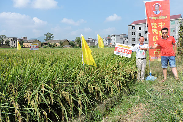 2017年9月8日,江西省新干縣召開了隆兩優(yōu)華占零售商觀摩及種植大戶預(yù)訂會議,全縣各鄉(xiāng)鎮(zhèn)零售商和種植大戶等80余人前往七琴鎮(zhèn)現(xiàn)場觀摩。